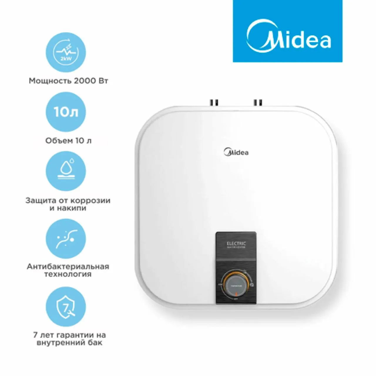 Midea MWH-1020-KVMU предлагает универсальность установки – выберите вариант под или над раковиной. Производитель уверен в качестве, предоставляя 7-летнюю гарантию на внутренний резервуар и заявляя срок службы в 10 лет. Вы сможете настроить температуру в диапазоне от 30 до 65°C. Для вашей безопасности предусмотрена защита от перегрева.