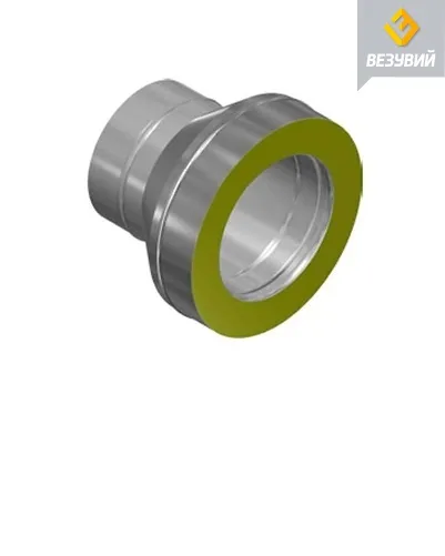 Производится из жаростойкой листовой стали разных марок. Также применяется в месте соединения труб разного поперечного сечения. Используется для перехода с одностенного дымохода на двустенный (утепленный).