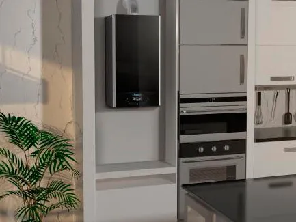 В стандартную комплектацию оборудования входит встроенный расширительный бак (8 л), циркуляционный насос, трехходовый клапан и модулируемая газовая горелка.