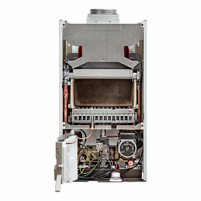 - Надежный медный теплообменник отопления: С антикоррозийным покрытием.