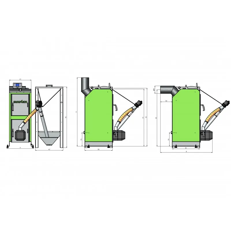 Твердотопливный котел Sakovich PELLET UNIVERSAL 36 кВт Цена за комплект (Теплообменник, горелка Kipi, бункер Bio)